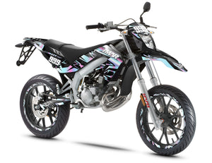 Die Aprilia SX 50 ist die Erbin des Könnens aus Noale, und unsere Dekorationssets entsprechen diesem Ruf. Wir haben äußerst präzise Schablonen entwickelt, die alle Generationen dieser ikonischen Maschine abdecken. Für Besitzer der Aprilia SX und RX (Modelle 2006 bis 2017) passen unsere Sets perfekt zu den scharf gezeichneten Verkleidungen im Originalstil von Derbi. Wenn Sie die neueste Version besitzen, die Aprilia SX / RX (Modelle 2018 bis 2026), berücksichtigen unsere Designs die neuen Formen der Seitenplatten und des Schutzblechs. Durch die Verwendung eines hoch haftenden Vinyls mit UV-Schutz garantieren wir, dass Ihr Set auch nach jahrelanger Sonneneinstrahlung nicht verblasst und gleichzeitig Ihre Kunststoffteile vor Abrieb und Spritzern schützt.