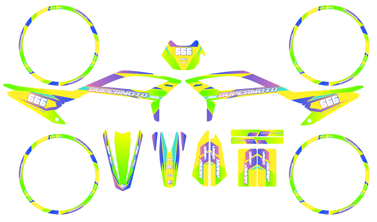 Jedes Design wird in 8 umweltfreundlichen Farben auf Premium-FLO® Vinyl ohne Blasen gedruckt. Dieser Schritt sorgt für intensive Farben, hohe visuelle Treue und überlegene Haltbarkeit gegenüber UV-Strahlen, Witterungseinflüssen und der intensiven Nutzung von 50cc Motorrädern.