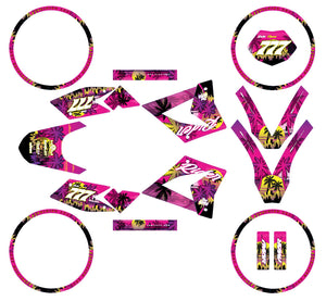 🎨 Deko-set Miami für CPI SMX 50cc : Verleihen Sie Ihrem Motorrad einen tropischen und farbenfrohen Touch mit hochwertigen Aufklebern, die Stil und Robustheit vereinen.