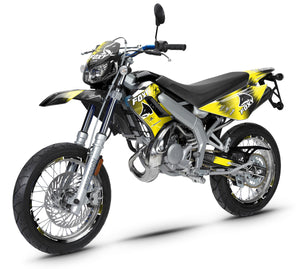 Bringen Sie den Stil Ihrer Maschine mit unseren Personalisierungslösungen für die Derbi DRD Racing 50cc auf ein neues Niveau. Wir haben Schablonen mit chirurgischer Präzision speziell für die Baureihe 2004-2010 entwickelt, die für ihre stromlinienförmigen Verkleidungen und die einzigartige Scheinwerferplatte bekannt ist. Ob Sie eine SM (Supermotard)- oder R (Enduro)-Version fahren, unsere Sets schmiegen sich perfekt an jede Kurve Ihrer Verkleidungen an. Durch die Verwendung eines Hochleistungsfolienmaterials gewährleisten wir nicht nur eine „Werkstatt“-Optik, sondern auch einen robusten Schutz gegen Straßenspritzer, Kratzer und Vergilbung durch UV-Strahlen.