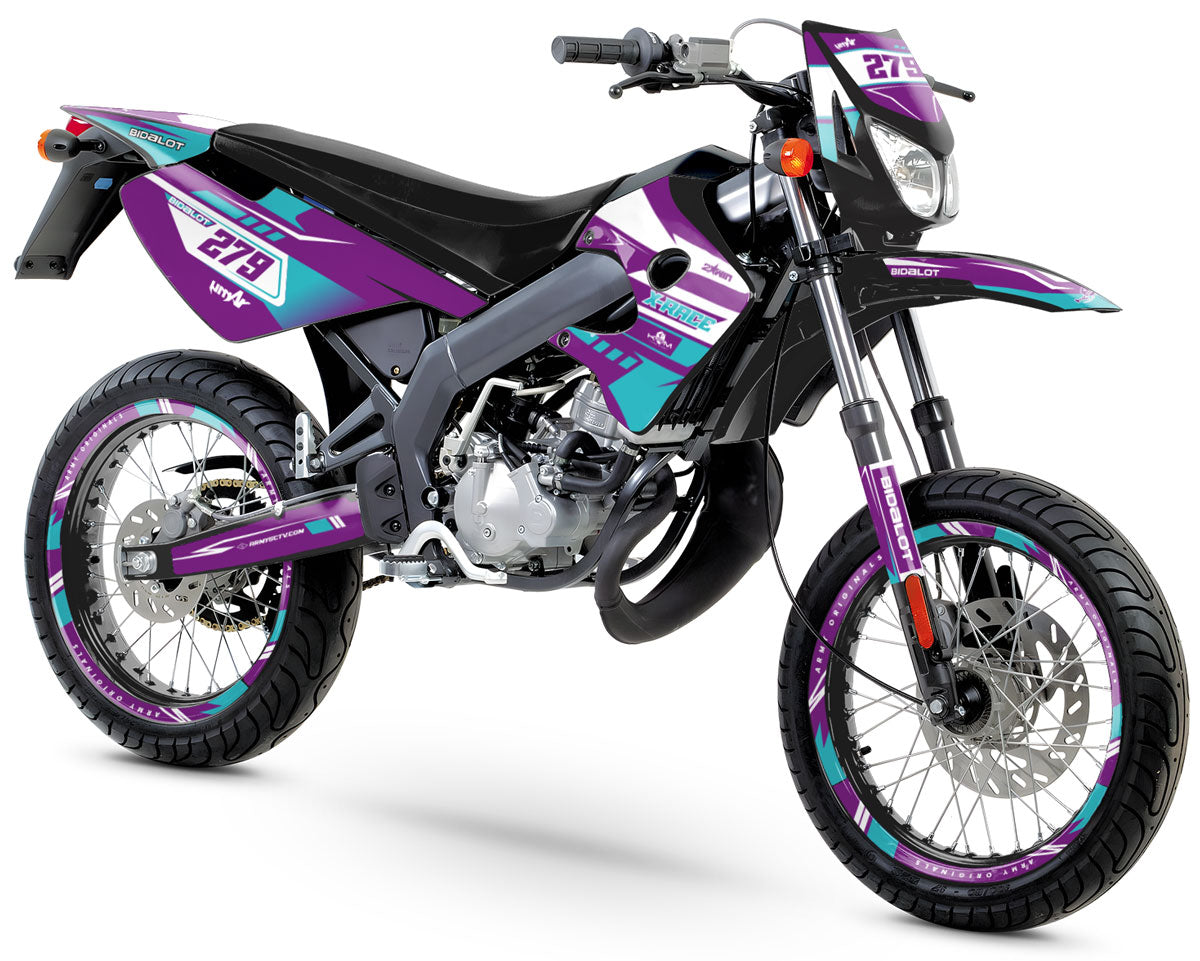 🎨 Deko-set Skynine für Derbi Senda X-race/X-treme 50cc (2003-2009) : Verleihen Sie Ihrem Motorrad mit diesem Skynine Dekor-Kit einen eleganten und auffälligen Look, der Leistung, Schutz und einen einzigartigen Stil für Ihre Supermoto-Abenteuer vereint.