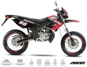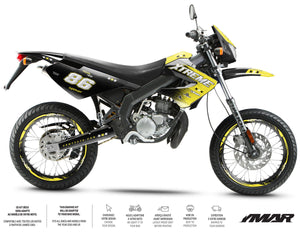Optimieren Sie das Aussehen Ihres Motorrads mit dem Dekor kit 50cc Derbi Senda X-treme Fasthouse, speziell entworfen für die Modelle von 2006 bis 2010. Dieses hochwertige Grafikset bietet einen sportlichen und dynamischen Stil, der direkt von der Welt des Rennsports inspiriert ist.