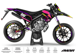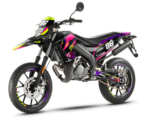 Der Deko-set für Derbi Senda X-treme SM 50cc ist für Supermoto-Enthusiasten konzipiert, die einen auffälligen und modernen Stil wünschen. Inspiriert von den hellen Lichtern und intensiven Farben der Neonlichter verwandelt dieses Dekokit Ihr Motorrad in eine einzigartige und fesselnde Maschine, während es gleichzeitig optimalen Schutz für die Straße und das Gelände bietet.