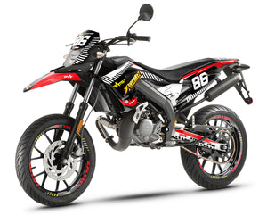 Seit 2018 hat sich die Derbi Senda X-Treme mit schlankeren Verkleidungen und einem entschieden modernen Design grundlegend weiterentwickelt. Unsere Dekorationssets sind speziell für diese neue Plattform (2018-2026) entwickelt. Ob Sie die SM (Supermotard)-Version mit ihren Speichenrädern oder die R (Enduro)-Version fahren, unsere Schablonen passen sich jeder Kante der neuen Kühleröffnungen und der profilierten Seitenplatten an. Mit hochdichten Folien gefertigt, verwandeln unsere Sets nicht nur das Aussehen Ihrer 50cc: Sie bilden eine äußerst widerstandsfähige Schutzschicht gegen Kratzer und alltägliche Stöße.