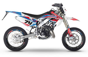 Hochwertige Dekorationssets für all Ihre Fahrzeuge: 50cc, 125cc (wie hier auf der Beta RR), Motocross, Supermotard, aber auch E-Bike und Maxi-Roller. Hergestellt aus erstklassigen Materialien von ArmySCTV, garantieren unsere Aufkleber eine einfache, blasenfreie Anbringung und höchste Widerstandsfähigkeit. Entscheiden Sie sich für ein halbmaßgeschneidertes oder maßgeschneidertes Design und verleihen Sie Ihrer Maschine einen einzigartigen Stil.