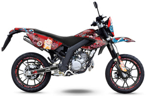 Mit den verfügbaren Personalisierungsoptionen können Sie den Namen und die Nummer Ihres Fahrers sowie Chromnummern hinzufügen, um ein noch einzigartigeres Erscheinungsbild zu erzielen. Dieses 50cc-Dekorationsset ist ideal, um Ihrem Motorrad ein neues Gesicht zu verleihen oder Unvollkommenheiten an Ihren Verkleidungen zu verbergen.
