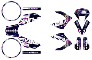 Überprüfen Sie, ob das Vinyl auf der gesamten Fläche Ihres 50cc Motorrad-Dekor-Kits gut befestigt ist. Entfernen Sie die Schutzfolie und nehmen Sie die notwendigen Nachbesserungen vor, um den einzigartigen Effekt Ihres holographischen Dekor-Kits zu betonen.