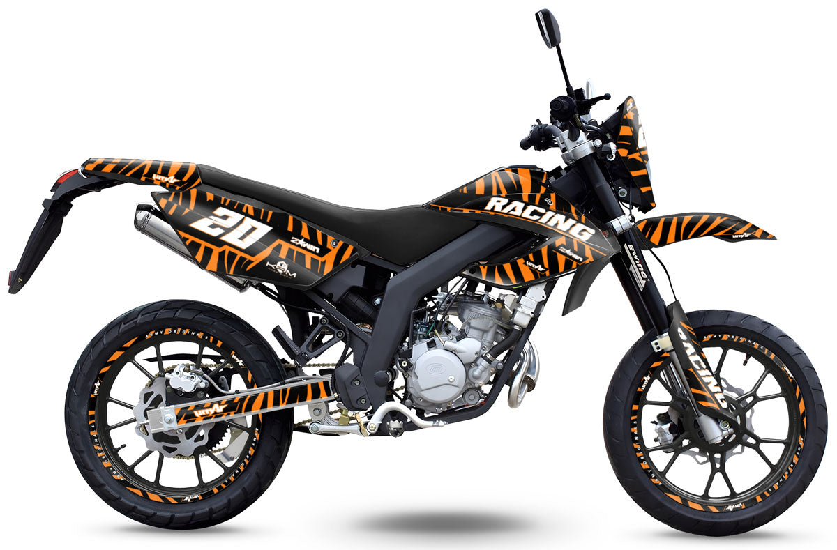 🎨 Deko-set für Masai Razer 50 SM 50cc (2012-2025) : Verleihen Sie Ihrem Motorrad mit diesem von Zebramustern inspirierten Design einen wilden und einzigartigen Look, der Leistung, Schutz und einen einzigartigen Stil für Ihre Supermoto-Abenteuer kombiniert.