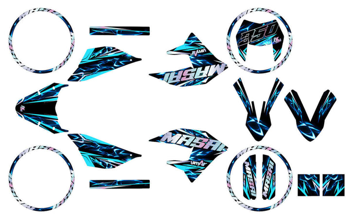 🎨 Deko-set Wheelyz für Masai X-Ray 50cc: Verwandeln Sie Ihr Motorrad in eine sportliche und kühne Maschine, ideal zum stilvollen und energiegeladenen Fahren.
