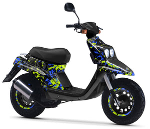 Das Dekor-kit Azyd für MBK Booster und Yamaha BW's (1990-2003) richtet sich an Fahrer, die abseits der ausgetretenen Pfade unterwegs sein wollen. Inspiriert von alternativen Kulturen und der Grafik im "Acid"-Stil, bietet dieses Modell eine intensive und komplexe visuelle Ästhetik. Es ist die perfekte Verkleidung, um einen klassischen Roller in eine Maschine mit starker Identität zu verwandeln, die moderne Grafik mit der Nostalgie des legendären vertikalen Rahmens verbindet.