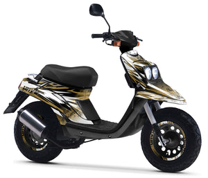 Ob Sie einen Klassiker restaurieren oder Ihr Alltagsfahrzeug individuell gestalten möchten, unsere Dekorationssets für 50cc Roller bieten eine unvergleichliche Schnittgenauigkeit. Wir beherrschen die komplexen Verkleidungen der Ikonen dieses Segments: von den legendären MBK Booster und Yamaha BW's bis hin zu den sportlichen MBK Nitro und Yamaha Aerox. Unser Katalog umfasst auch die unverzichtbaren Stadtmodelle wie den Piaggio Zip, den Kymco Agility sowie die gesamte Peugeot-Reihe mit den Peugeot Kisbee, Speedfight und dem zeitlosen Trekker. Unsere hochwertigen Folien sind so gestaltet, dass sie sich den geschwungenen Formen der Rollerkarosserien anpassen und gleichzeitig einen robusten Schutz gegen Kratzer im Stadtverkehr und UV-Strahlen bieten.