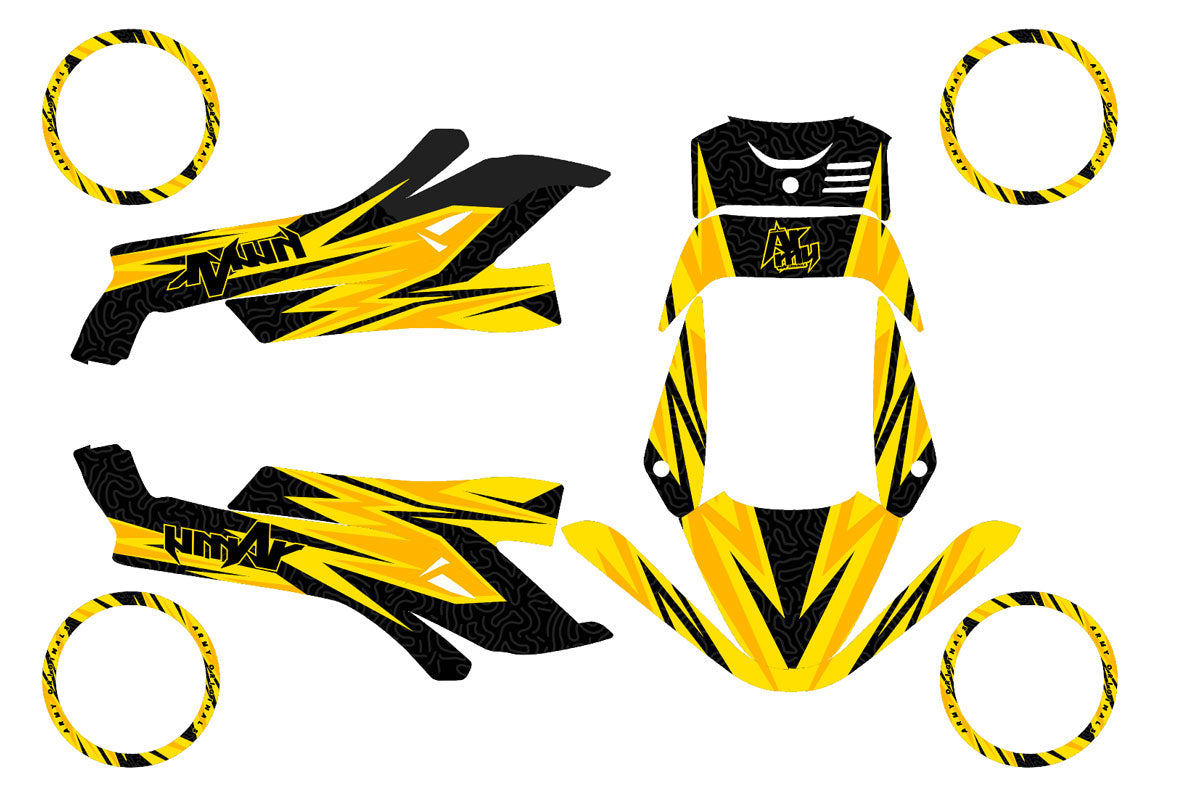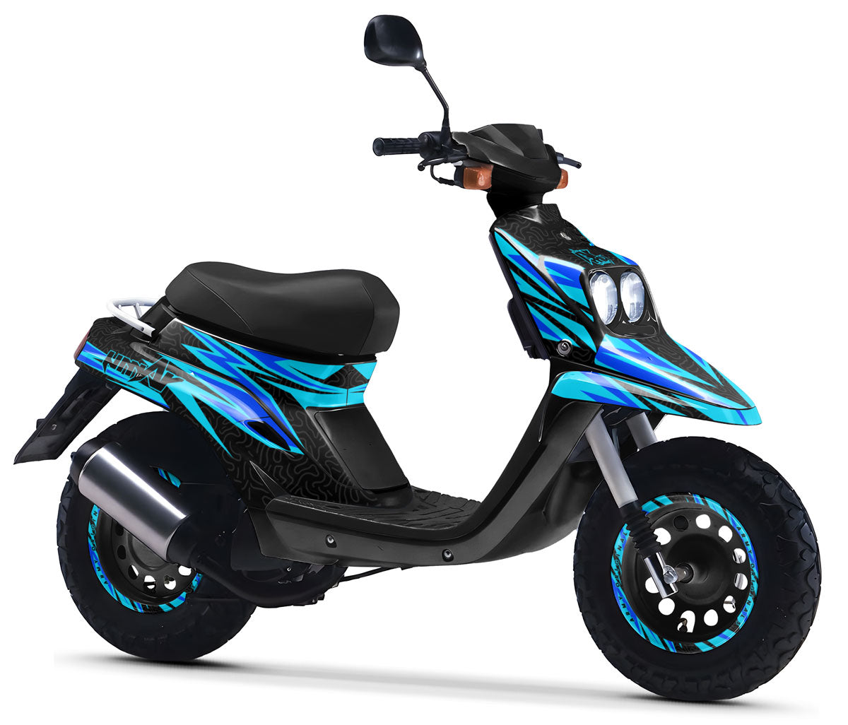 Ob Sie einen Klassiker restaurieren oder Ihr Alltagsfahrzeug individuell gestalten möchten, unsere Dekorationssets für 50cc Roller bieten eine unvergleichliche Schnittgenauigkeit. Wir beherrschen die komplexen Verkleidungen der Ikonen dieses Segments: von den legendären MBK Booster und Yamaha BW's bis hin zu den sportlichen MBK Nitro und Yamaha Aerox. Unser Katalog umfasst auch die unverzichtbaren Stadtmodelle wie den Piaggio Zip, den Kymco Agility sowie die gesamte Peugeot-Reihe mit den Peugeot Kisbee, Speedfight und dem zeitlosen Trekker. Unsere hochwertigen Folien sind so gestaltet, dass sie sich den geschwungenen Formen der Rollerkarosserien anpassen und gleichzeitig einen robusten Schutz gegen Kratzer im Stadtverkehr und UV-Strahlen bieten.