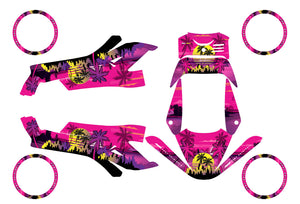 Das Dekor-kit Miami für MBK Booster und Yamaha BW's (1990-2003) ist ein wahrer Frischekick für Ihren Roller. Inspiriert von den charakteristischen Farben von South Beach verbindet dieses Modell lebendige Grafiken und leuchtende Farbtöne zu einem ganz und gar „Lebensstil“-haften Auftritt. Es ist die perfekte Verkleidung für Fahrer, die ihre klassische Maschine in ein Symbol urbaner Mode verwandeln möchten, das die Nostalgie der 90er Jahre mit moderner Grafik vereint.