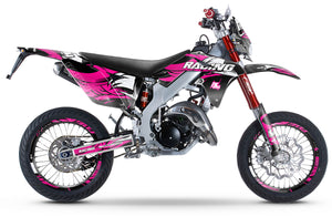 Veredeln Sie das exklusive Design Ihrer Maschine mit unseren grafischen Lösungen für die Valenti Racing 50. Wir haben ultra-präzise Schablonen speziell für die Baureihe 2013-2016 entwickelt, die die gesamten Verkleidungen dieser außergewöhnlichen Schaltgetriebemaschine abdecken. Ob Sie die Version SM (Supermotard) oder Enduro fahren, unsere Sets schmiegen sich perfekt an die straffen Linien der Lüftungsschlitze, Seitentafeln und des Schutzblechs an. Hergestellt aus hochhaftenden Folien, wirken unsere Sets wie ein Schutzschild gegen Spritzer, Kratzer und Verfärbungen und sorgen dafür, dass Ihre Valenti ihr „Werkstattfrisches“ Aussehen behält.