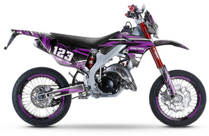 Veredeln Sie das exklusive Design Ihrer Maschine mit unseren grafischen Lösungen für die Valenti Racing 50. Wir haben ultra-präzise Schablonen speziell für die Baureihe 2013-2016 entwickelt, die die gesamten Verkleidungen dieser außergewöhnlichen Schaltgetriebemaschine abdecken. Ob Sie die Version SM (Supermotard) oder Enduro fahren, unsere Sets schmiegen sich perfekt an die straffen Linien der Lüftungsschlitze, Seitentafeln und des Schutzblechs an. Hergestellt aus hochhaftenden Folien, wirken unsere Sets wie ein Schutzschild gegen Spritzer, Kratzer und Verfärbungen und sorgen dafür, dass Ihre Valenti ihr „Werkstattfrisches“ Aussehen behält.