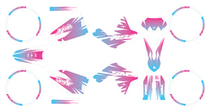 Durch die Heißlaminierung ist ein optimaler Schutz vor UV-Strahlen, Kratzern und Stößen für maximale Haltbarkeit gewährleistet. Und wenn Sie Ihr Grafikset personalisieren möchten, können Sie die Farben ändern, die Sponsoren ändern, Ihren Fahrernamen oder Ihre Startnummer hinzufügen, Chromnummern oder sogar Gabelaufkleber hinzufügen.