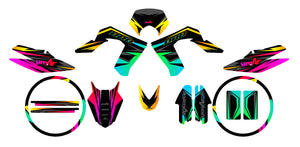 Überprüfen Sie, ob das Vinyl auf der gesamten Fläche Ihres 50cc Motorrad-Dekor-Kits gut befestigt ist. Entfernen Sie die Schutzfolie und nehmen Sie die notwendigen Nachbesserungen vor, um den einzigartigen Effekt Ihres holographischen Dekor-Kits zu betonen.