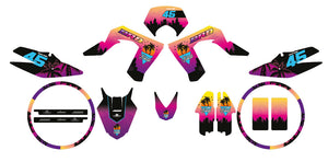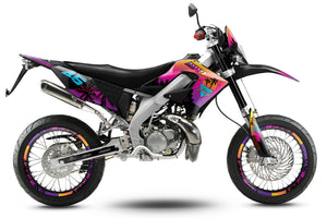 🎨 Deko-set Miami für Derbi DRD Pro (2006-2014) : Verwandeln Sie Ihr Motorrad in ein retro und strahlendes Kunstwerk, ideal um stilvoll und originell zu fahren.