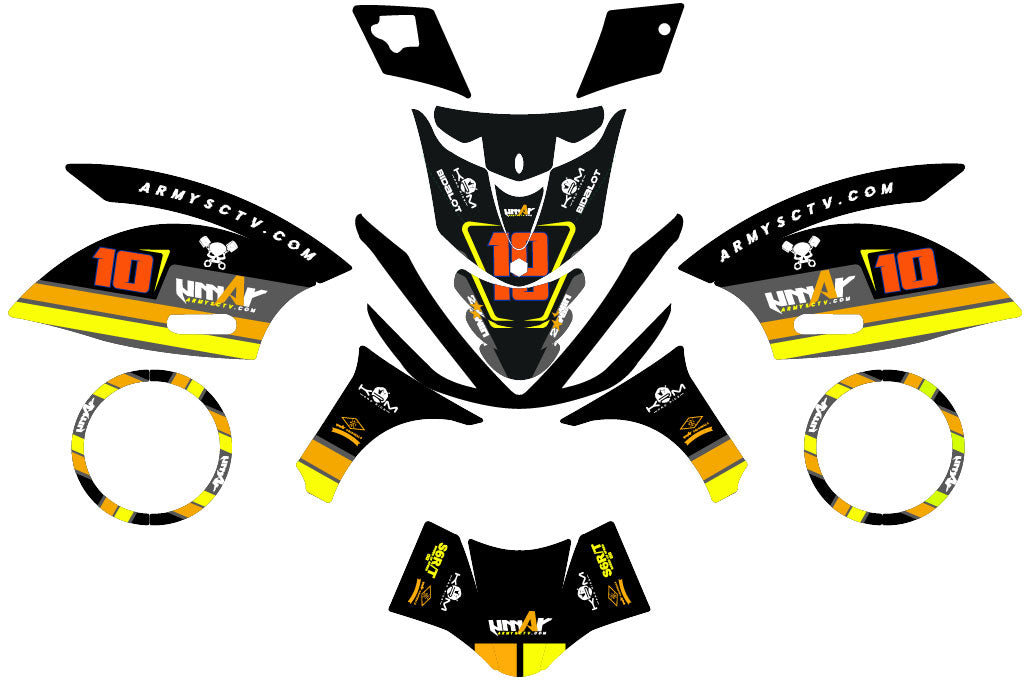 Ihr Set wird auf hochwertigem Vinyl mit der "Air Free"-Technik gegen Blasen gedruckt. Nach dem Auftragen Ihrer Oberfläche (Glänzend, Matt oder Chrom) wird jedes Teil präzise in unserer Werkstatt zugeschnitten und sicher verpackt versandt, bereit zur Anbringung an Ihrem Roller.