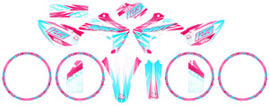 Um den "Bonbon"-Effekt des Gum-Designs zu maximieren, ist die Glänzende Oberfläche bei diesem Dekor-kit Motorrad unverzichtbar. Wenn Sie ein wirklich einzigartiges und verrücktes Ergebnis wünschen, lässt die Option Glitzernd (Glitter) die Farben in der Sonne funkeln. Die Holographische Oberfläche fügt Regenbogenschimmer hinzu für einen bewusst psychedelischen Look.