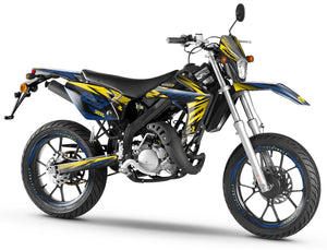Le Kit Déco Volt pour Rieju MRT 50 est conçu pour les riders qui recherchent un impact visuel immédiat. En reprenant les codes graphiques de l'électricité et de la haute fréquence, ce modèle injecte une dose de puissance visuelle à votre carrosserie. C'est le kit déco moto parfait pour dynamiser une Rieju MRT et lui donner une allure technique et rapide.