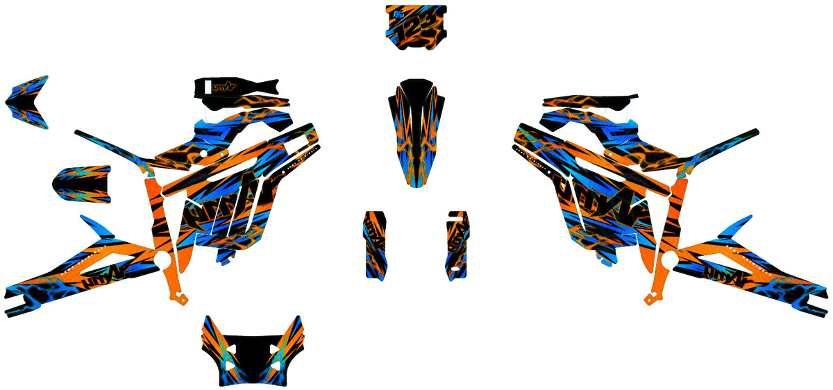 Das Dekor-kit Cool für die Talaria Sting MX5 ist die perfekte Verbindung von erfrischender Ästhetik und höchstem Schutz. Entwickelt für Fahrer, die einen fließenden und souveränen Stil zeigen wollen, verwendet dieses Modell Farbverläufe in Blau- und Türkistönen, um die futuristischen Linien Ihres elektrischen Geländemotorrads zu betonen. Es ist das ideale Dekor-kit für Geländemotorräder, um sich mit lässiger Eleganz von der Masse abzuheben.