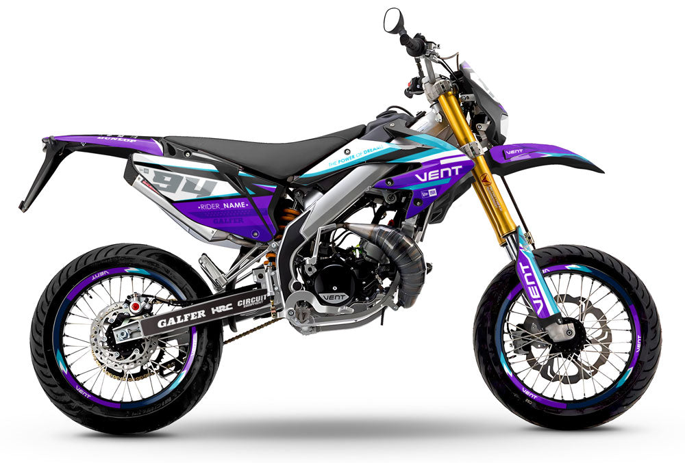Thanks to high-quality manufacturing, our Vent 50cc decal kits allow you to transform your motorcycle while effectively protecting it against everyday wear: splashes, rubbing, UV rays, mud, and bad weather. Whether you ride supermoto, enduro, or mixed use, your Vent adopts a modern and lasting racing style.