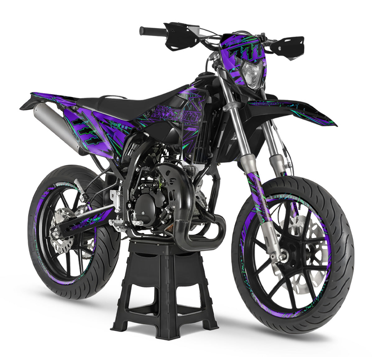 Available in semi-custom or fully bespoke versions, our Sherco decoration kits allow you to create a unique visual identity while effectively protecting the fairings against rubbing, UV rays, mud, and wear. On the road, in supermoto, or in enduro, your Sherco 50cc takes on a professional and top-tier look.