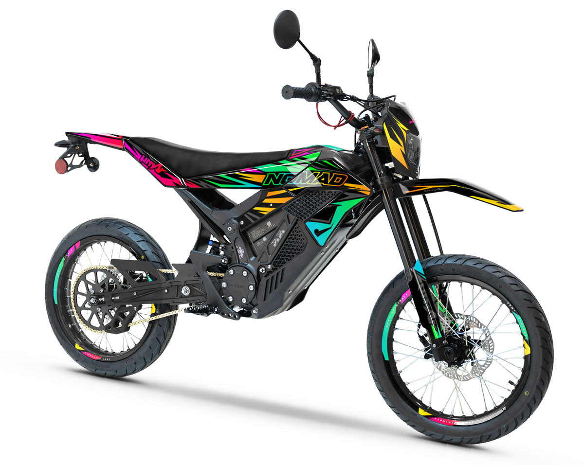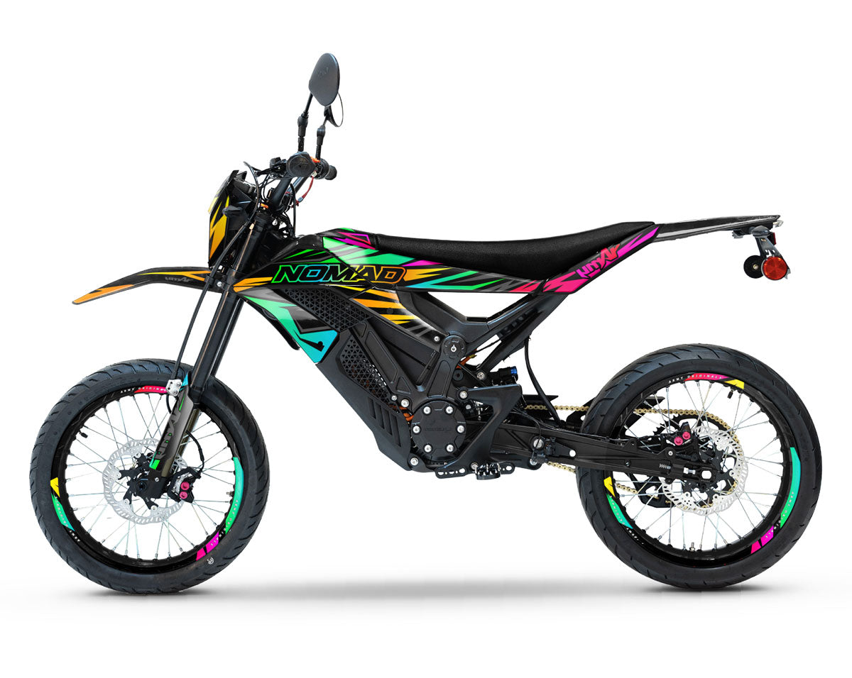 The Graphics-kit Eclipse for Rieju e-Tango is designed for those who prefer striking subtlety over visual noise. The e-Tango is a nimble shadow in the city or on the trails; the Eclipse design strengthens this identity with a sophisticated "Dark Mode" covering, playing on deep blacks and light reflections.