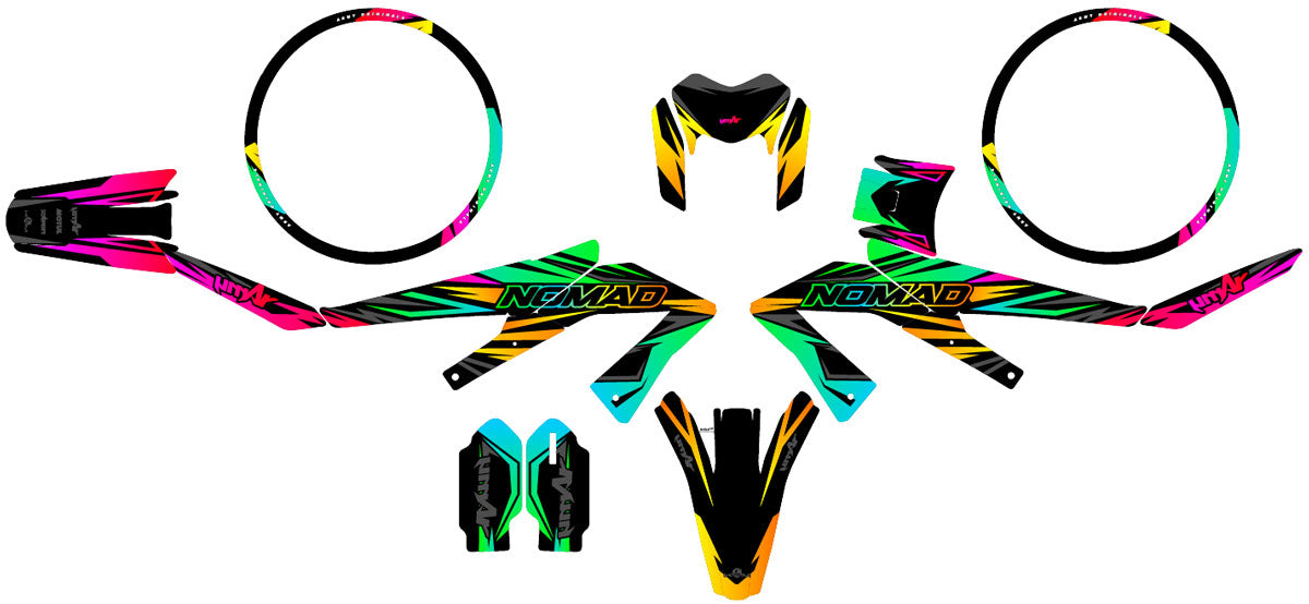 Does the kit fit original and aftermarket plastics (UFO, Acerbis, Cycra)?Our templates are extremely precise. When placing your order, it is crucial to specify the year, the exact model, and whether you have changed your fairings to brands like UFO, Acerbis, Polisport, or Cycra. We will adjust the cutouts accordingly for a perfect fit.