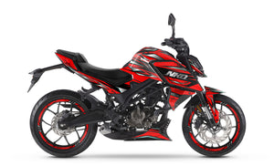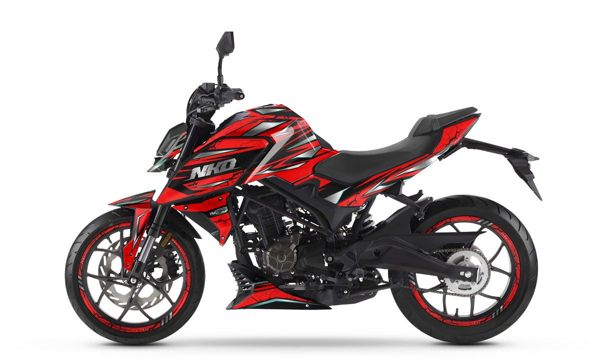 The Graphics-kit Illuzion for the Rieju NKD 125 is the secret weapon for riders who like to stand out by playing with visual codes. The 2026 NKD 125 features a compact and sharp silhouette; with this graphics-kit boasting a psychedelic and trompe-l'œil aesthetic, your two-wheeler blurs the lines of the asphalt and becomes a true visual enigma for everyone who crosses its path.