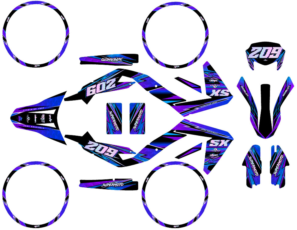 The Aprilia SX 50 is the heir to the craftsmanship of Noale, and our decal kits live up to this reputation. We have developed ultra-precise templates covering all generations of this iconic machine. For owners of Aprilia SX and RX (models 2006 to 2017), our kits fit perfectly the sharp-lined Derbi original fairings. If you own the latest version, the Aprilia SX / RX (models 2018 to 2026), our designs incorporate the new shapes of side panels and mudguards. By using a high-cohesion vinyl with UV protection, we guarantee that your kit will not fade, even after years of exposure, while protecting your plastics against rubbing and splashes.