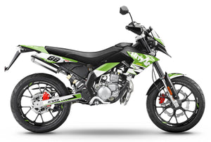 The Graphic decals for Derbi Senda SM DRD Evo 50cc (2008-2010) is designed for 50cc motorcycle enthusiasts looking for a timeless and refined design. Inspired by classic elements and clean lines, this decal kit will give your motorcycle an elegant and unique look while providing reliable protection against wear and weather.