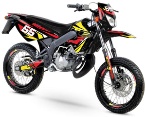 Discover our 50cc decal kit for Derbi Senda X-race and X-treme (2003-2009) Stream, designed to transform your motorcycle into a unique machine. Made with high-quality materials and 8-color printing with eco-solvent inks, this decal kit is both durable and environmentally friendly. The improved cutting templates ensure easy and quick installation for a professional result. This kit is ideal for those seeking meticulous customization and bold style for their 50cc motorcycle. With modern and eye-catching designs, it fits perfectly on Derbi Senda X-race and X-treme models, while offering maximum protection against wear.