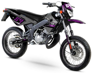 Transform your Derbi Senda X-race and X-treme (2003-2009) with our 50cc Stuff graphics kit. This decoration kit is designed for those who want bold customization and unmistakable style. Printed with high quality eco-solvent inks and featuring 8 color printing, it guarantees maximum durability while respecting the environment. Thanks to improved cut-out templates, installation is quick and easy. This decorative kit also protects your motorcycle against wear, while offering a dynamic and sporty look. Perfectly adapted to the Derbi Senda X-race and X-treme models, it highlights your motorcycle while optimizing its aesthetics.