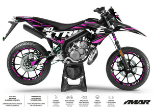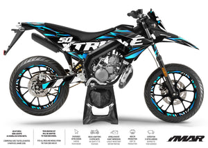 The Graphic decals for Derbi Senda X-treme 50cc transforms your motorcycle with a modern and striking design. Inspired by speed and precision, this decal kit is perfect for customizing your 50cc motorcycle while providing durable and reliable protection.