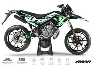Since 2018, the Derbi Senda X-Treme has undergone a radical transformation with sleeker fairings and a decidedly modern design. Our decal kits are specifically developed for this new platform (2018-2026). Whether you ride the SM (Supermotard) version with its spoked wheels or the R (Enduro) version, our templates fit every edge of the new radiator vents and the shaped side panels. Using high-density vinyls, our kits do not merely change the look of your 50cc: they form an ultra-strong protective barrier against scratches and everyday impacts.