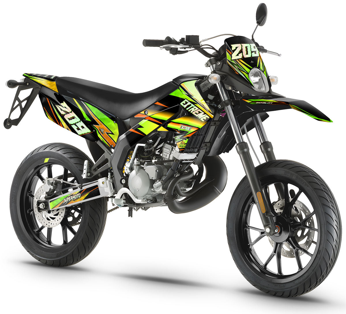 Lift the wheel in style with the Graphics-kit Cabrez for Derbi Senda X-Treme and Racing (2011 to 2017). Embodying the spirit of Bikelife, this energetic design is made to stand out at the spot. Made from ultra-durable premium vinyl, it offers a spectacular renovation to your fairings while effectively protecting them from rubbing and impacts.