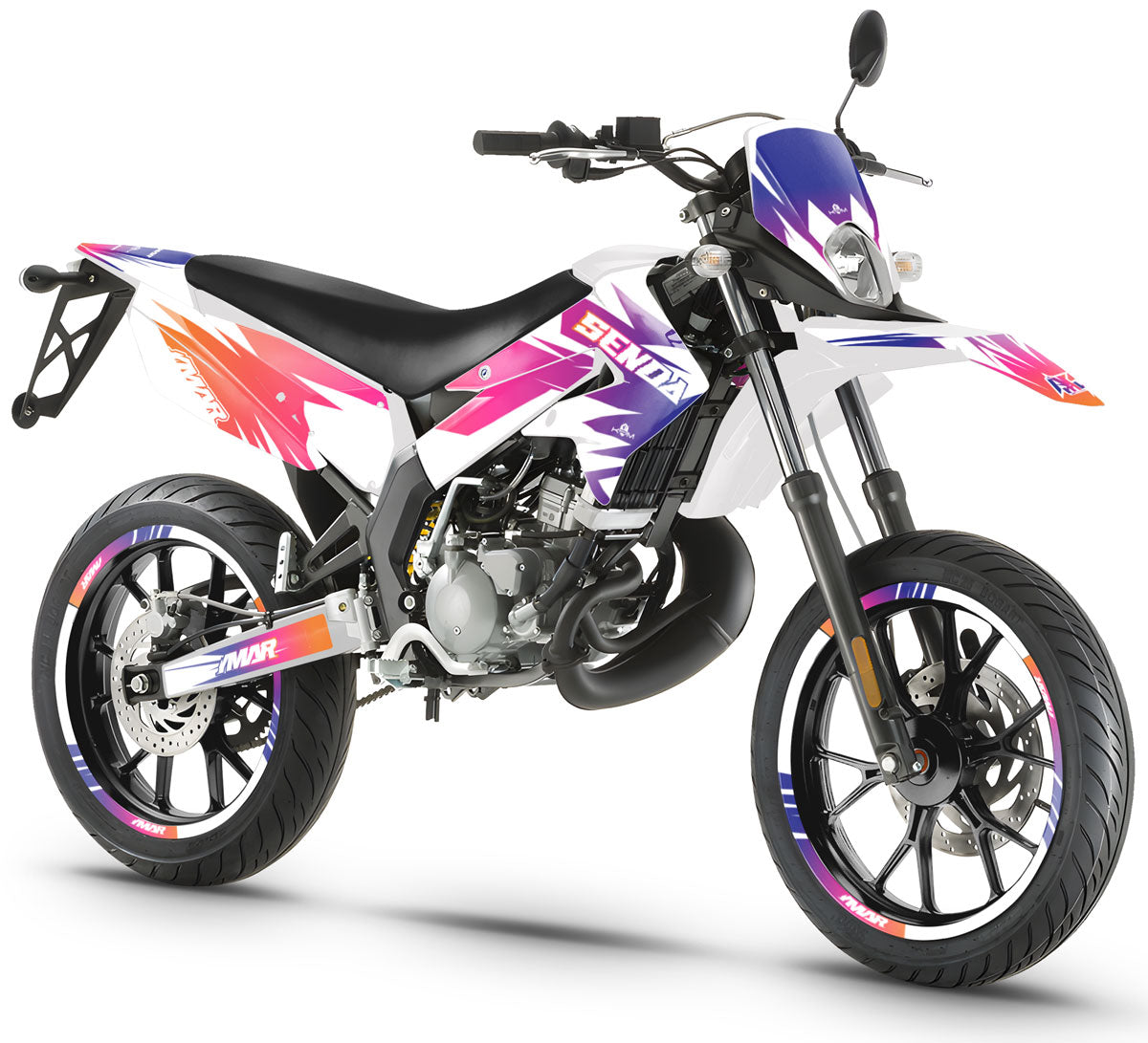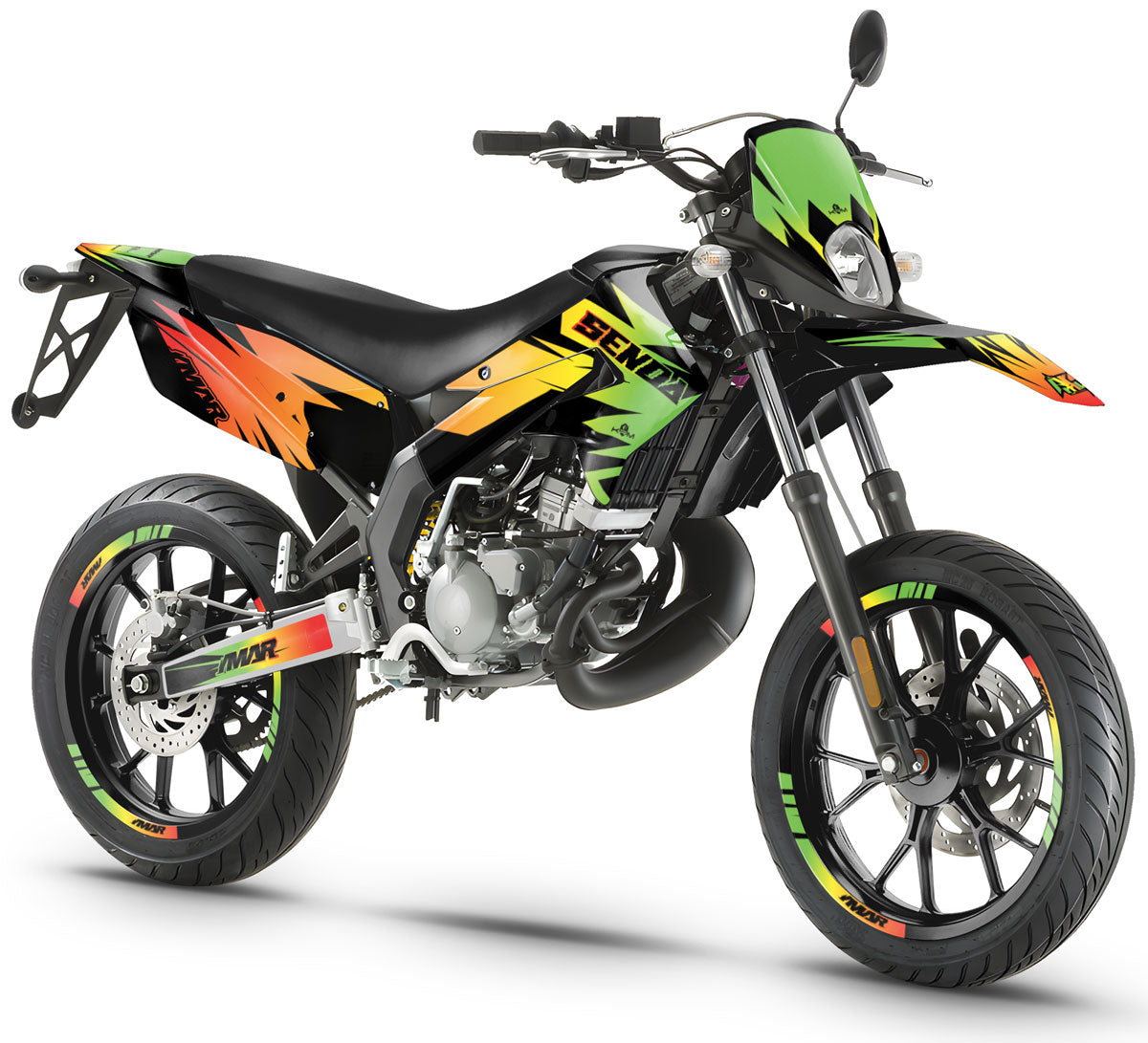 🎨 Graphic decals for Derbi Senda X-treme 50cc (2011-2017) : Give your bike a fast and bold look with this dynamic design, combining energetic style and maximum protection for your supermoto adventures.
