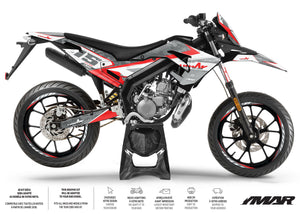 🎨 Graphic decals for Derbi Senda X-treme SM 50cc: Embrace a futuristic and bold style while enjoying superior quality and ideal protection for your supermoto adventures.