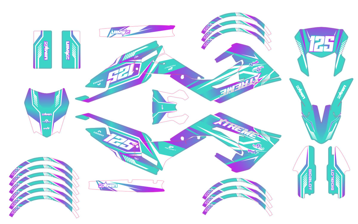 Our decal kits bring a unique and captivating style to your motorcycle. Ideal for enthusiasts who want to stand out.