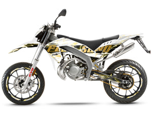 Knock out the competition with the Graphics-kit Haymaker for Aprilia SX and RX 50cc (2006 to 2017). Inspired by raw power, this design offers a striking and massive look that transforms the appearance of your motorcycle. Printed on a thick, quality "armor" vinyl, it is ideal for refreshing aging fairings while providing maximum protection.