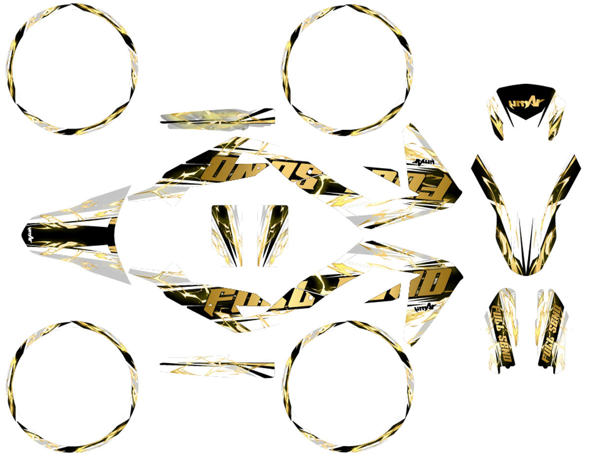 Does the kit fit original and aftermarket plastics (UFO, Acerbis, Cycra)?Our templates are extremely precise. When placing your order, it is crucial to specify the year, the exact model, and whether you have changed your fairings for brands like UFO, Acerbis, Polisport, or Cycra. We will adjust the cutouts accordingly for a perfect fit.