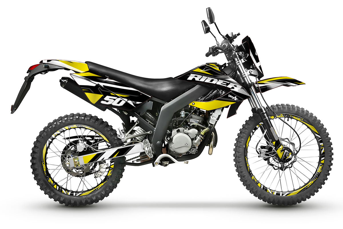 🎨 Graphic decals Vision for Masai Rider 50cc (2012-2025) : Give your motorcycle a futuristic and innovative look with this modern design, combining performance, protection, and a unique style for your supermoto and Enduro adventures.