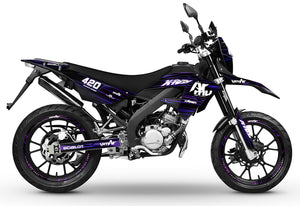 Add a touch of luxury to your Masai X-Ray 50cc with the Graphics kit of Gold and Platinum. This sophisticated design combines elegant patterns with accents golden And silver, creating a high-end and exclusive look for your 50 supermoto. Made with materials scratch-resistant, to UV and to the weather, it ensures optimal durability while providing a brilliant finish. Installation is easy thanks to the bubble-free FLO technology, and the kit is available in several finishes.bright, death, satin, holographic Or glittery) to enhance the aesthetics of your motorcycle.