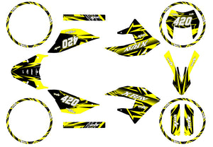 The Graphic decals Eighth for Masai X-Ray 50cc is ideal for 50 supermotard enthusiasts who want a symbolic and elegant design. Inspired by the balance and perfection associated with the number eight, this decal kit adds a sophisticated and unique touch to your bike while providing durable protection and easy installation.