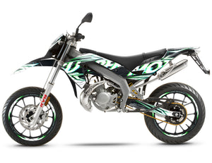 With the Graphics kit Mr Anderson for Aprilia SX/RX 50cc (2006-2017), transform your motorcycle into a unique, modern, and personalized machine. ArmySCTV offers you an aggressive, durable, and highly distinctive design to stand out on the road and on the track.