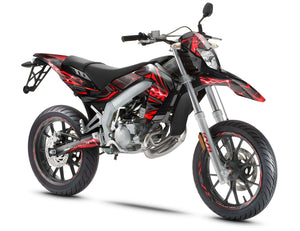 The Aprilia SX 50 is the heir to the craftsmanship of Noale, and our decal kits live up to this reputation. We have developed ultra-precise templates covering all generations of this iconic machine. For owners of Aprilia SX and RX (models 2006 to 2017), our kits fit perfectly the sharp-lined Derbi original fairings. If you own the latest version, the Aprilia SX / RX (models 2018 to 2026), our designs incorporate the new shapes of side panels and mudguards. By using a high-cohesion vinyl with UV protection, we guarantee that your kit will not fade, even after years of exposure, while protecting your plastics against rubbing and splashes.