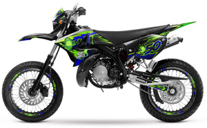 Give your machine a modern look or a "Racing" style with our graphic solutions for the Yamaha DT 50cc. We have developed ultra-precise cutting patterns specifically for the 2004-2010 generation, covering all the fairings. Whether you own the DT 50 SM (Supermotard) version with its spoked wheels or the DT 50 R (Enduro) version made for trails, our kits fit every curve of the mudguard, vents, and side panels. Our premium vinyls act as a true shield, protecting your plastics against impacts, scratches, and fading caused by UV rays.