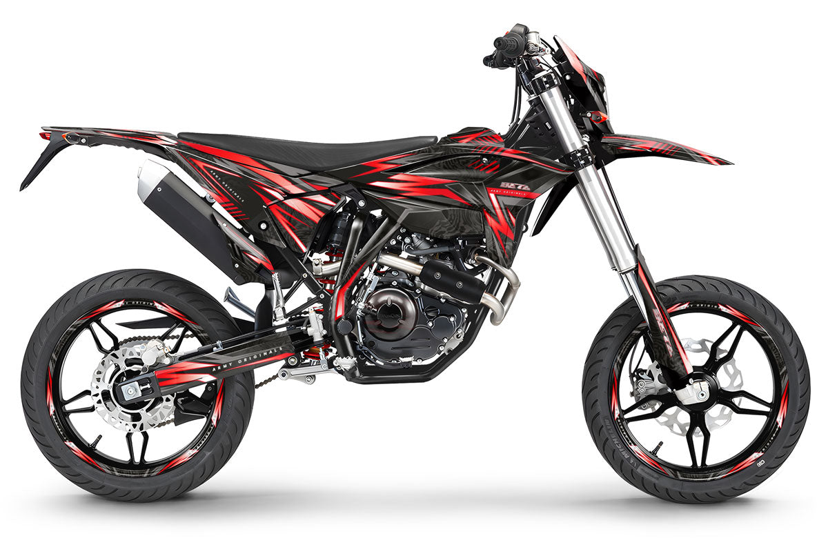 The Graphics-kit Alpha was created for riders of the Beta RR 125 LC who seek a look that is both commanding and refined. Inspired by the codes of modern racing, the Alpha design shapes your bike’s fairings with bold color blocks and precise technical details.
